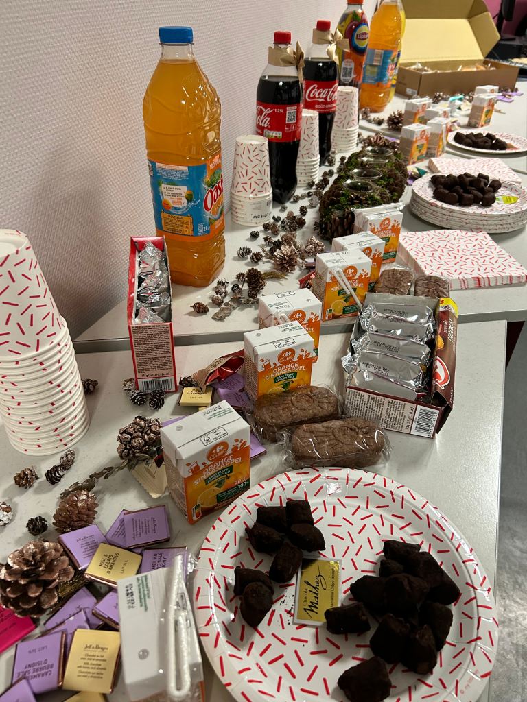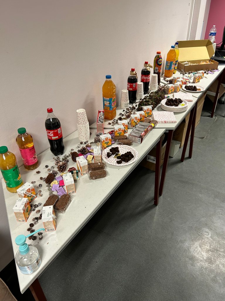 Avec d’autres bénévoles, nous avons mis en place la table mais aussi décoré la salle qui nous a été mise à disposition.
